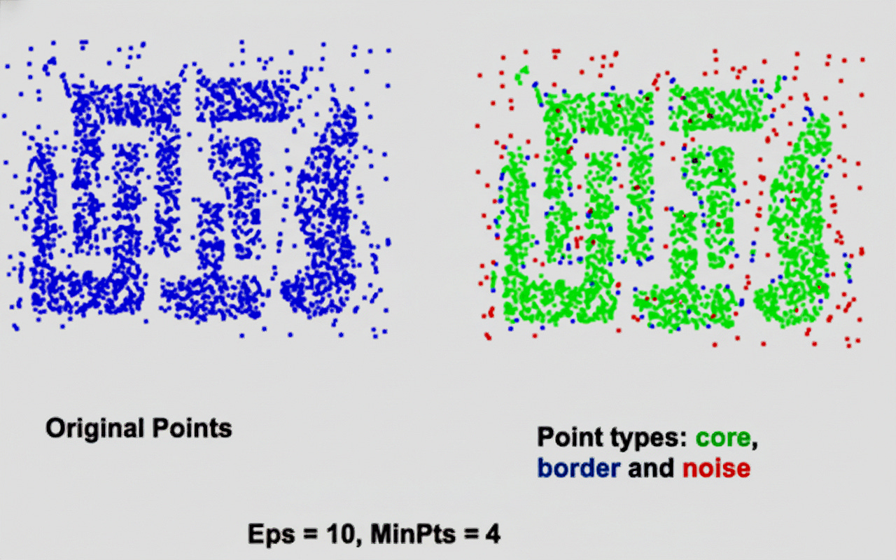 The image below illustrates how DBSCAN classifies data points based on local density.